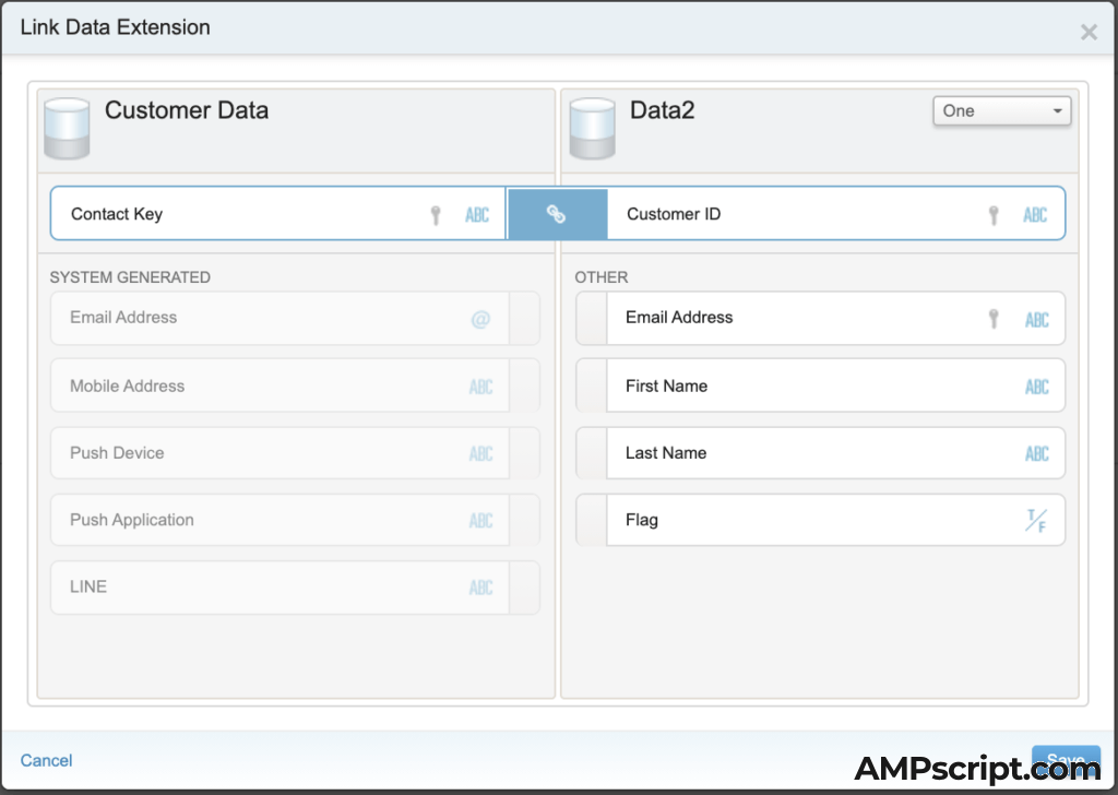 4. Link your Contact Key to your SubscriberKey in your data extension. Verify the update.